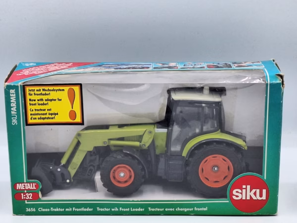 Mooie en gedetailleerde Claas Ares 697 ATZ met Voorlader van Siku. De details zijn o.a.: beweegbare voorlader, stuurbaar via dak, fronthef, achterhef en 4wd. Let op: doos heeft opslag schade, model is in goede staat.