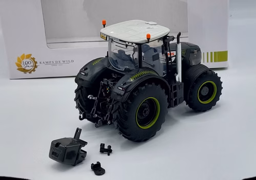 Mooie en zeer gedetailleerde Claas Axion 870 “Kamps de Wild 100 Jaar” van ROS. Details zijn o.a..: speciale groen/zwarte kleur, fronthef, achterhef, frontgewicht, 3 verschillende trekhaken en spiegels inklapbaar. Jubileum uitgave 100 jaar Kamps en de Wild. Let op: model is in nieuwstaat, doos heeft opslag schade.