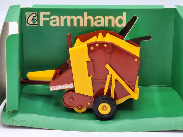 Mooie en gedetailleerde FarmHand Ronde Balenpers van Britains. De details zijn o.a.: klep kan open en inclusief baal. Let op: Doosje is verkleurd, model is nieuw.