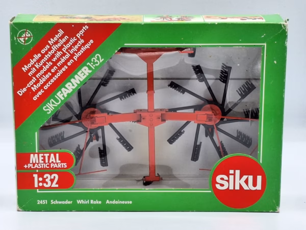 Mooie en gedetailleerde Fella Dubbele Zwadhark van Siku. De details zijn o.a.: draaiende rotors, rotors zijn opklapbaar, zwadbord, breedte borden en meeloopwielen. Let op: doos heeft lichte opslag schade, model is nieuw.
