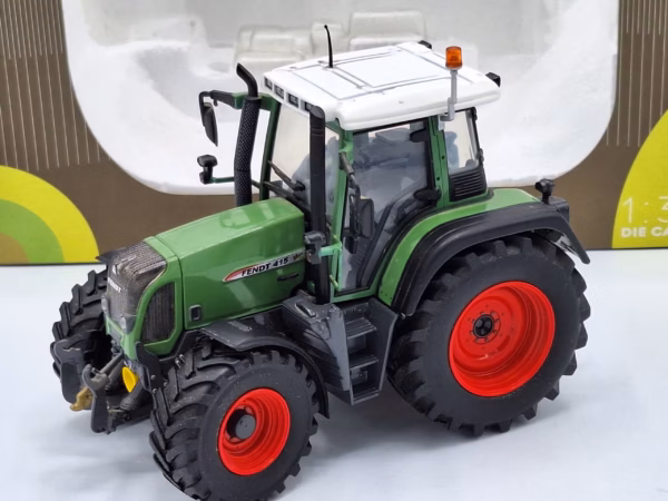 Mooie en gedetailleerde Fendt 415 Vario van Universal Hobbies. De details zijn o.a.: fronthef, achterhef, zwaailamp, antenne en cabine interieur. Let op: model mist de topstang achter, dit geeft geen hinder, kan toch niet gebruikt worden, piepschuim heeft schade, model is verder in nieuwstaat.