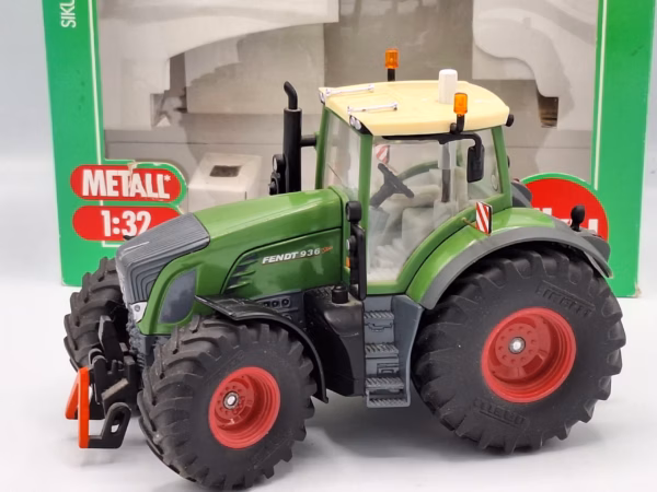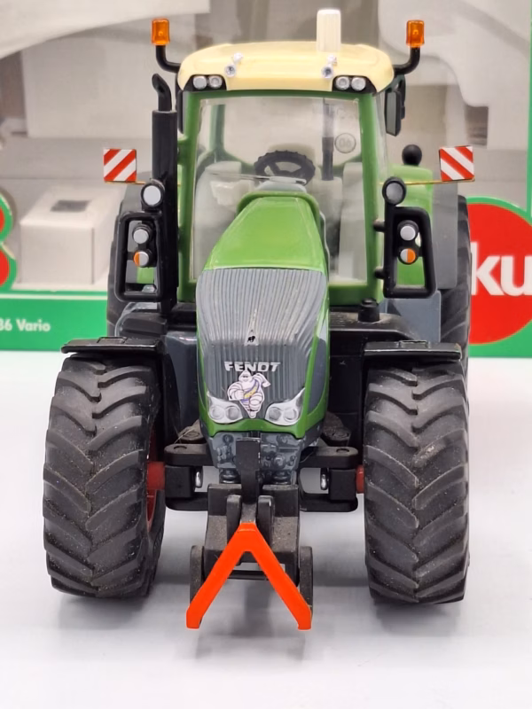 Mooie en gedetailleerde Fendt 936 Vario van Siku. De details zijn o.a.: fronthef, achterhef, stuurbaar via dak, motokap kan open en werklampen. Aangepast: model is voorzien van luchthoorns, breedte bordjes, sticker op de dakrand achter en Michelin sticker op de grill. Let op: dak is licht verkleurd, model is verder in nieuwstaat.