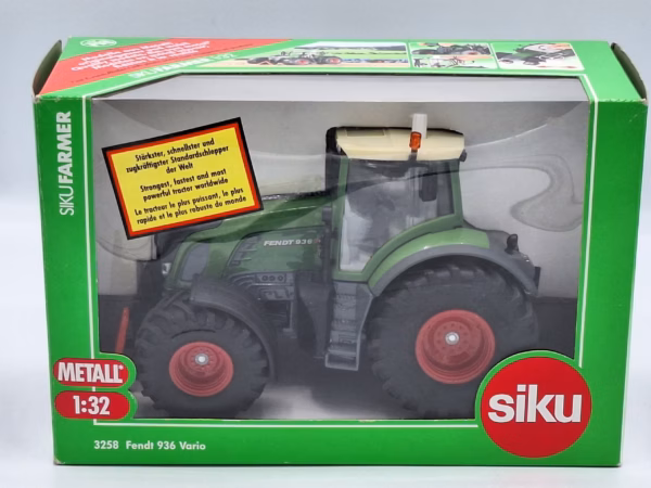 Mooie en gedetailleerde Fendt 936 Vario van Siku. De details zijn o.a.: 4WD, fronthef, achterhef, zwaailampen, spiegels zijn inklapbaar en werklampen. Let op: dak is licht verkleurd, model is verder in nieuwstaat.