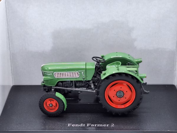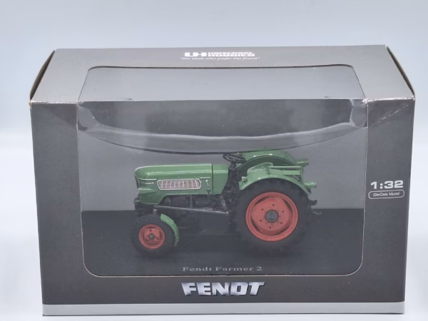 Mooie en zeer gedetailleerde Fendt Farmer 2, 1ste Versie van Universal Hobbies. Details zijn o.a..: 2wd, motorkap kan open, zitje op spatbord en achterhef. Model is in nieuwstaat.
