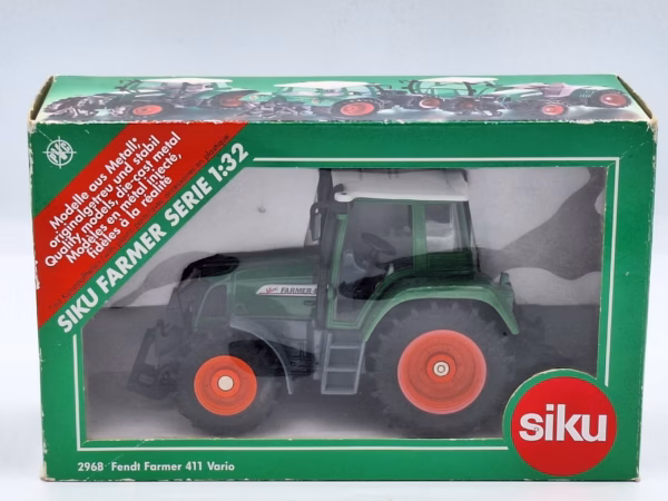 Mooie en gedetailleerde Fendt Farmer 411 Vario van Siku. De details zijn o.a.: spiegels zijn inklapbaar, 4WD, fronthef en achterhef. Let op: doos heeft lichte opslag schade, model is nieuw.