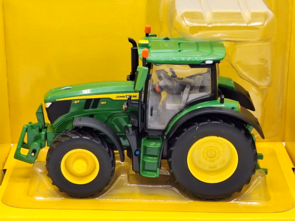 Mooie en gedetailleerde John Deere 6R 185 van Britains. De details zijn o.a.: fronthef, achterhef, 4WD, 2 zwaailampen, cabine interieur en werklampen. Let op: model is eenmalig uit doos geweest, daarom doos lichte schade.