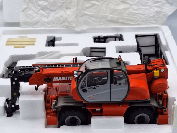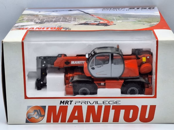 Mooie en gedetailleerde Manitou MRT 2150 Privilege Verreiker van ROS. De details zijn o.a.: arm kan in en uit schuiven, steunpoten, zwaailampen, werklampen en diverse hulpstukken. Model is in nieuwstaat.
