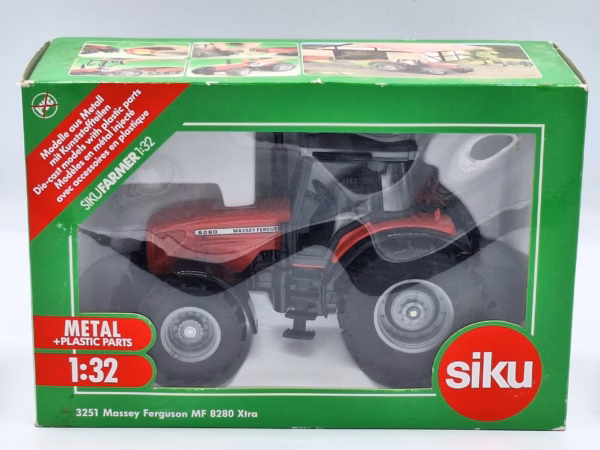 Mooie en gedetailleerde Massey Ferguson MF 8280 Xtra van Siku. De details zijn o.a.: fronthef, achterhef, spiegels zijn inklapbaar en 4WD. Let op: Doos heeft lichte opslag schade, model is nieuw.