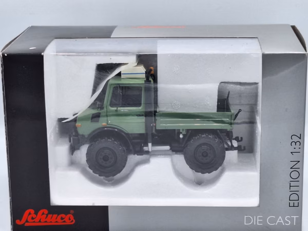 Mooie en gedetailleerde Mercedes Benz Unimog U 1600 Agrar Limited Edition van Schuco. De details zijn o.a.: klep kan open, achterhef en zwaailamp. Model is in nieuwstaat.